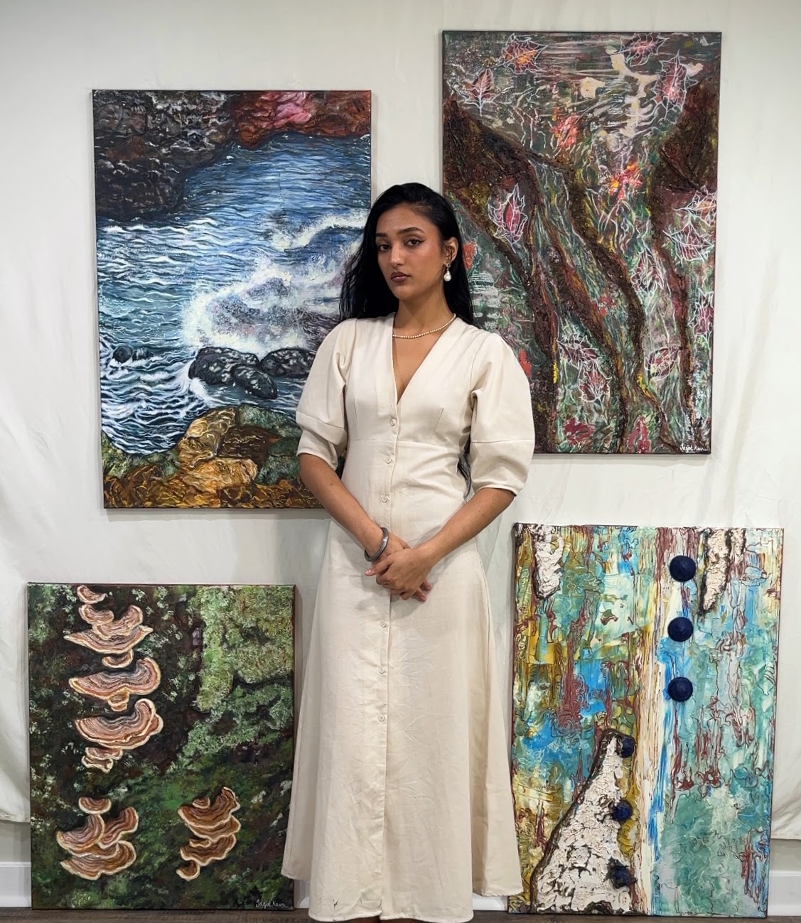 Presenting their paintings, Self-Portrait With Kantha, Pose 5, Resurfacing. Learn more here.